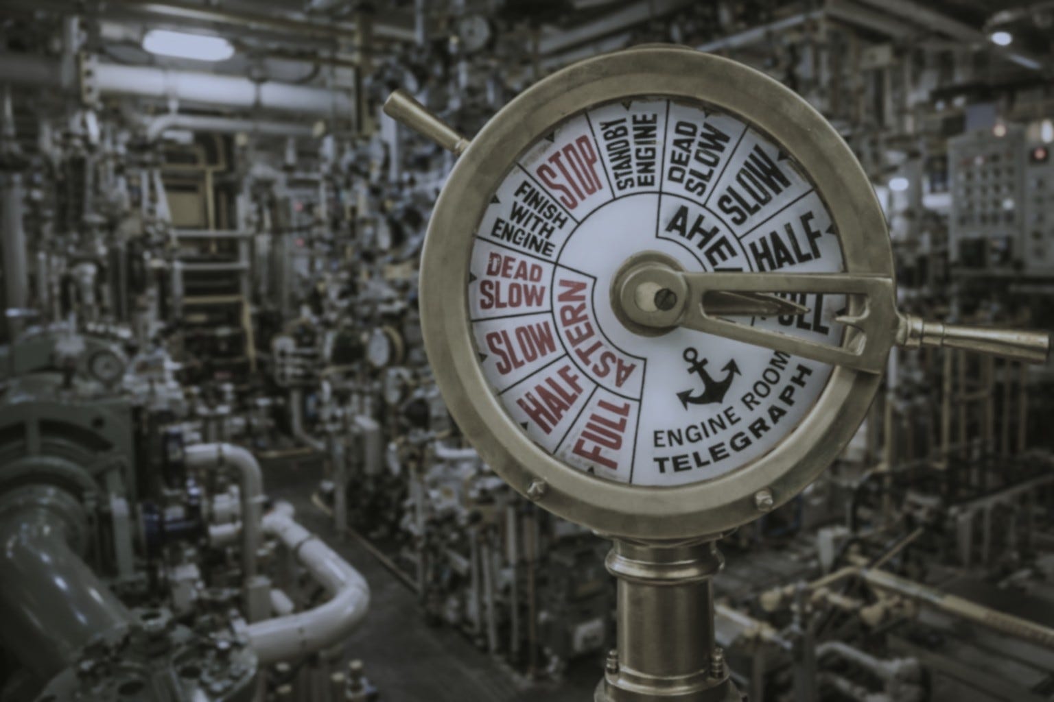 the ship’s telegraph for orders from the bridge where the skipper and his pilot